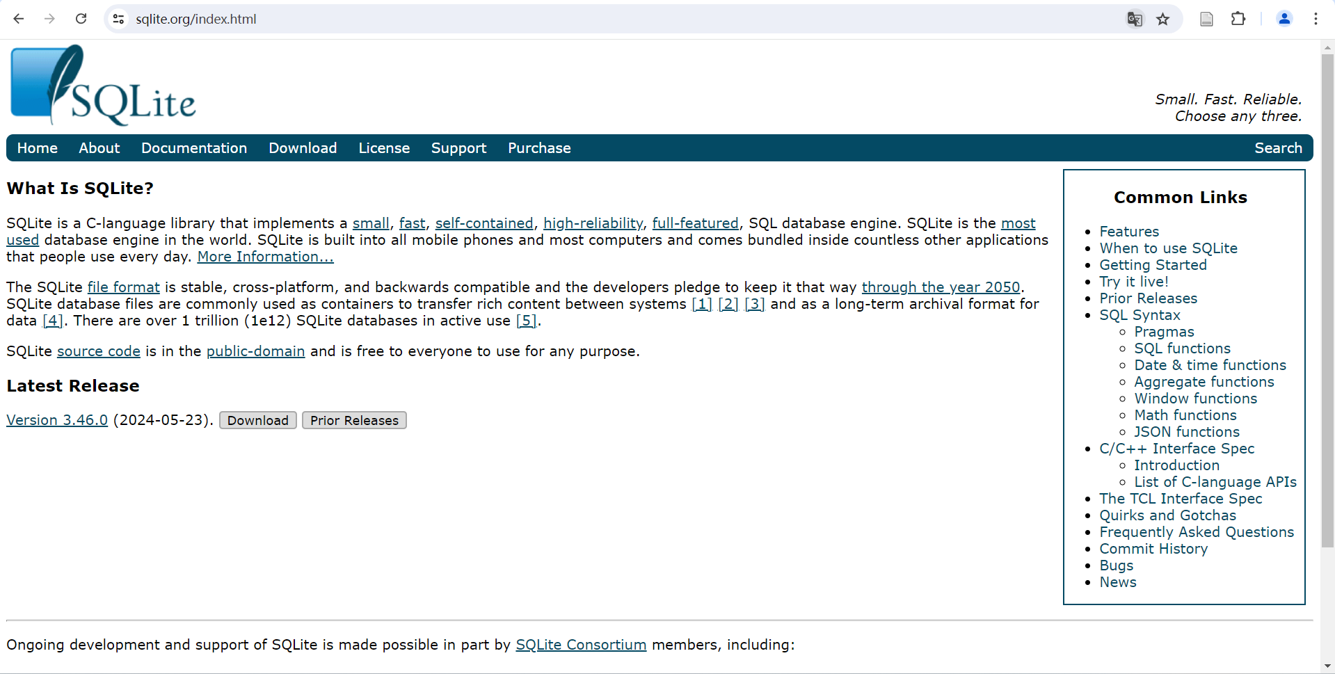 进入sqlite官网:https://www.sqlite.org/index.html