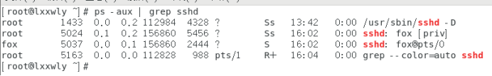 重启后:cat /var/log/hsp.log | grep sshd —————–>打开这个文件只查看sshd服务的