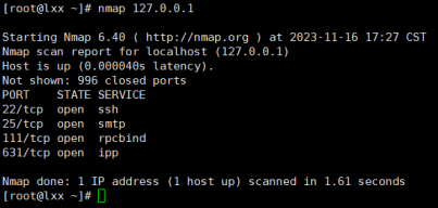 namp可以查看端口占用情况(yum -y install nmap)
