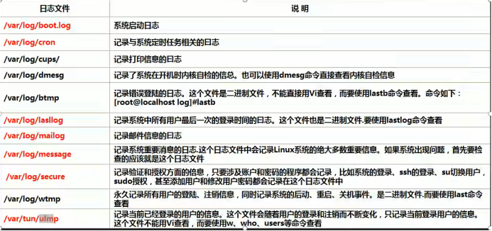 日志文件是重要的系统信息文件,其中记录了许多重要的系统事件,包括用户的登录信息、系统的启动信息、系统的安全信息、邮件相关信息、各种服务相关信息等