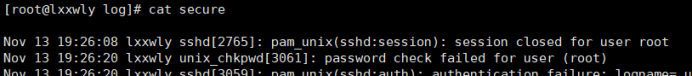 • 先清空secure文件里的内容,后面查看更方便(在log目录下):echo ‘’ > secure