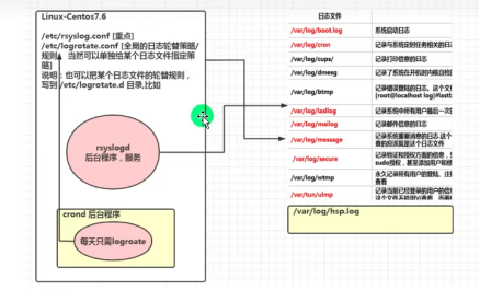 crond后台程序每天都执行logrotate程序,logrotate程序会去读取我们写好的策略(/etc/logrotate.conf里面的轮替策或/etc/logrotate.d目录下的轮替规则)。rsyslogd只管写日志,不管轮替,轮替工作是由logrotate完成,当满足轮替规则时,进行移动、改名或删除。