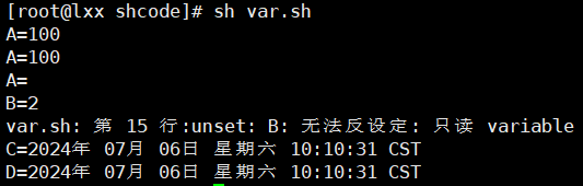 声明静态变量,声明后不能unset:readonly 变量