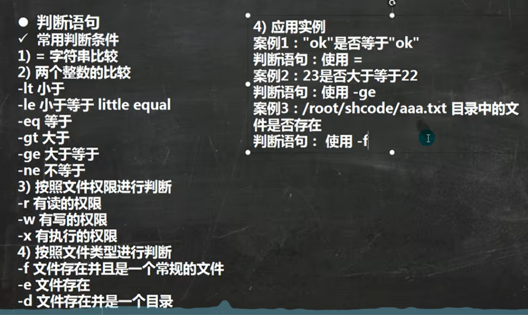 注:[ 条件判断式 ],中括号和条件判断式之间必须有空格,fi表示结束