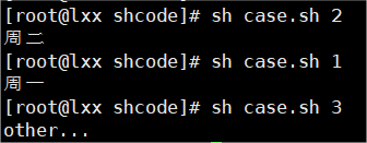 案例:当命令行参数是1时,输出”周一”,是2时,就输出”周二”,其他情况输出”other”