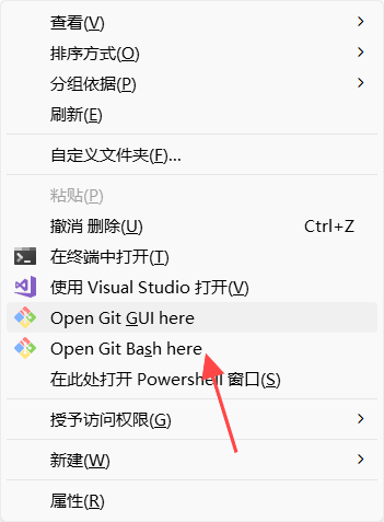 选择一个存放grpc项目的文件,按下Shift+鼠标右键,就会弹出如下目录,点击Open Git Bash here